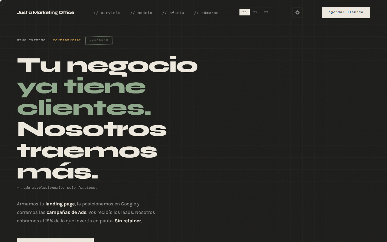 Proyecto propioJust a Marketing Office — Agencia de Leads